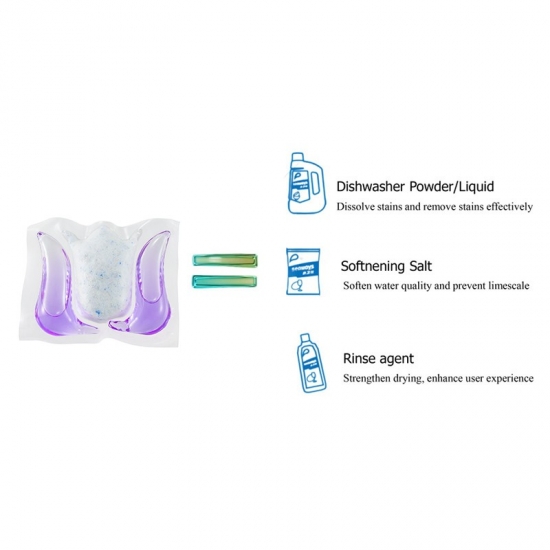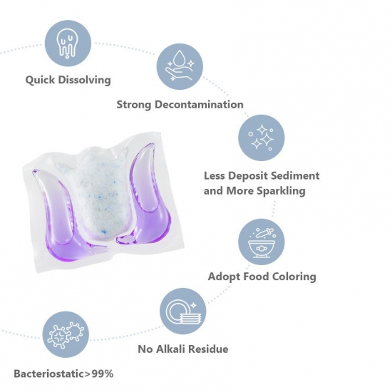 Las cápsulas para lavavajillas pueden limpiar eficazmente nuestra vajilla con ultra limpieza. Con múltiples funciones de eliminación de manchas difíciles, ablandamiento del agua, alta tasa bacteriostática, prevención de depósitos y hacer que la vajilla tenga un efecto extra brillante, etc. Las cápsulas para lavavajillas ultra limpias son adecuadas para la mayoría de los lavavajillas comunes del mercado.